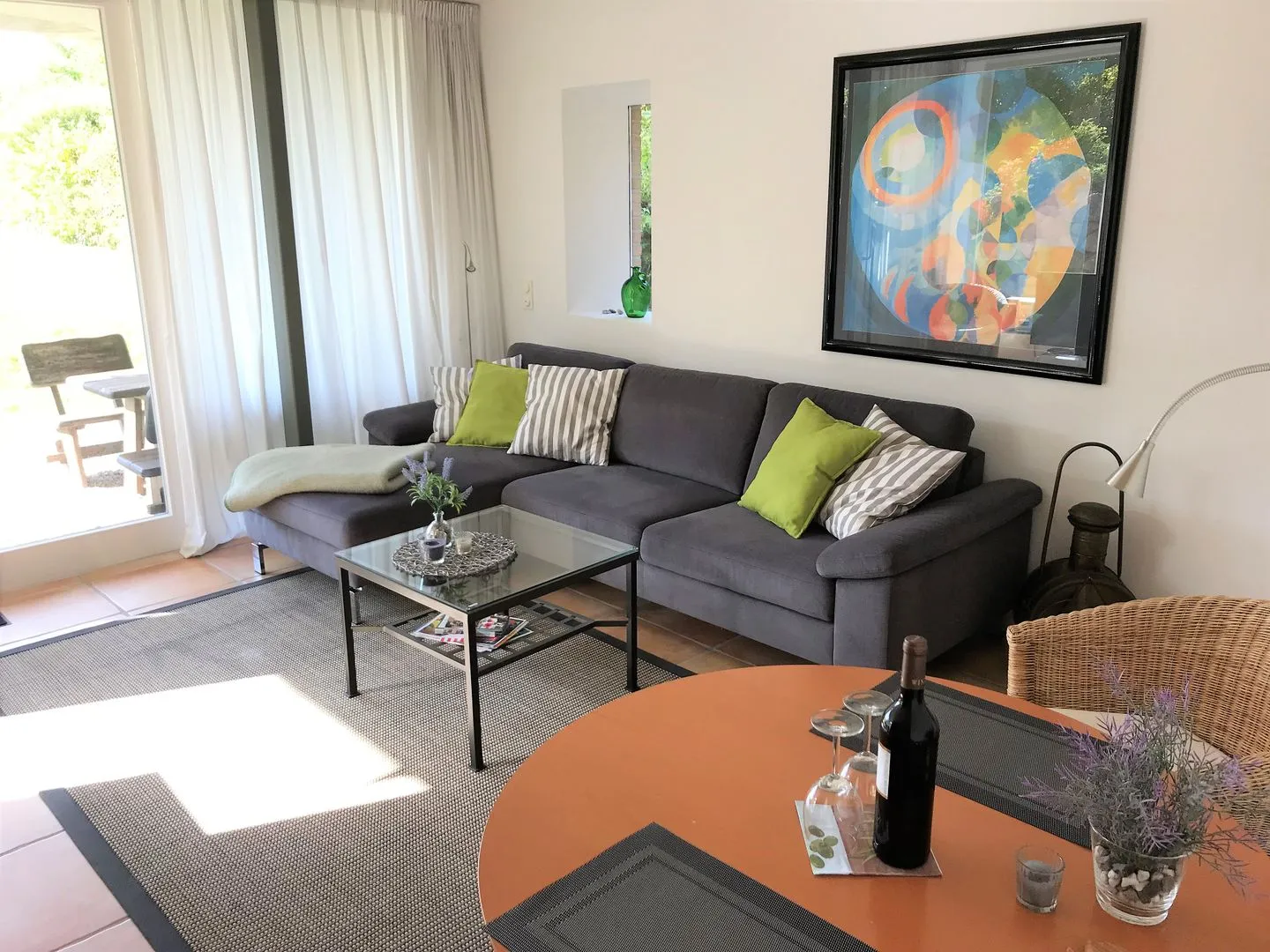 Die Ferienwohnung liegt im EG eines modernen Hauses mit direktem Schleigrundstück. Die moderne und stilvolle Ausstattung lässt keine Wünsche offen. Das schöne Duschbad mit bodengleicher Dusche bietet alle Voraussetzungen für einen entspannten Start in einen perfekten Urlaubstag. Beginnen Sie mit einem gemütlichen Frühstück auf der großen und überdachten Terrasse mit herrlichem Blick auf die Schlei. Oder vielleicht doch erst lieber ein Morgenbad? Mit dem eigenen schilfumsäumten Strand an der Schlei verfügt das Grundstück auch über eine private Badestelle für ein Schwimmen in den Sonnenaufgang.
